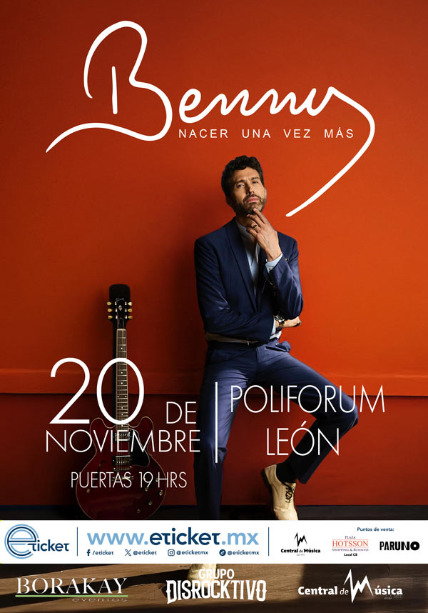 Con “Nacer una vez más”, Benny presenta un espectáculo que celebra la música, la vida y la renovación artística. En este concierto, el cantautor mexicano comparte sus grandes éxitos junto con nuevas composiciones que transmiten frescura, emoción y cercanía. Su voz inconfundible y su estilo versátil recorren baladas, pop y rock en español que han acompañado a varias generaciones. Una experiencia musical íntima y vibrante que reafirma a Benny como una de las figuras más entrañables de la escena latinoamericana.